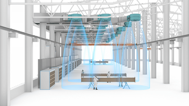 Зона открытой окраски предназначена для безопасного окрашивания изделий в пространстве участка окраски. Изделия размещаются под группой воздушных сопел для возможности окраски со всех сторон, с обеспечением проезда для стремянок и прохода для персонала.